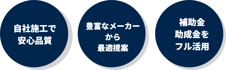 自社施工+豊富なメーカー選択肢で納得感のある価格・品質。